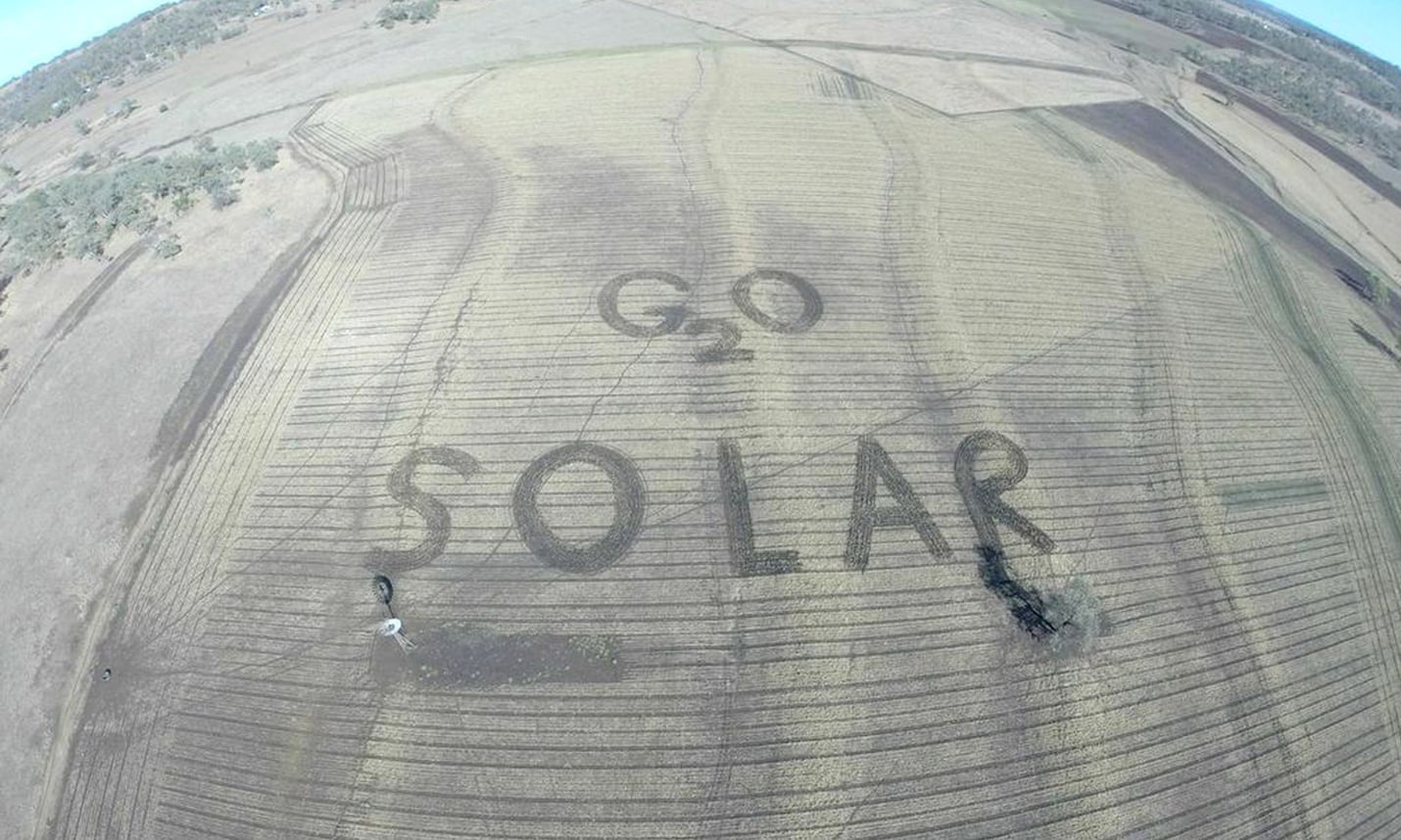A ‘Go solar’ message ploughed into a Queensland paddock